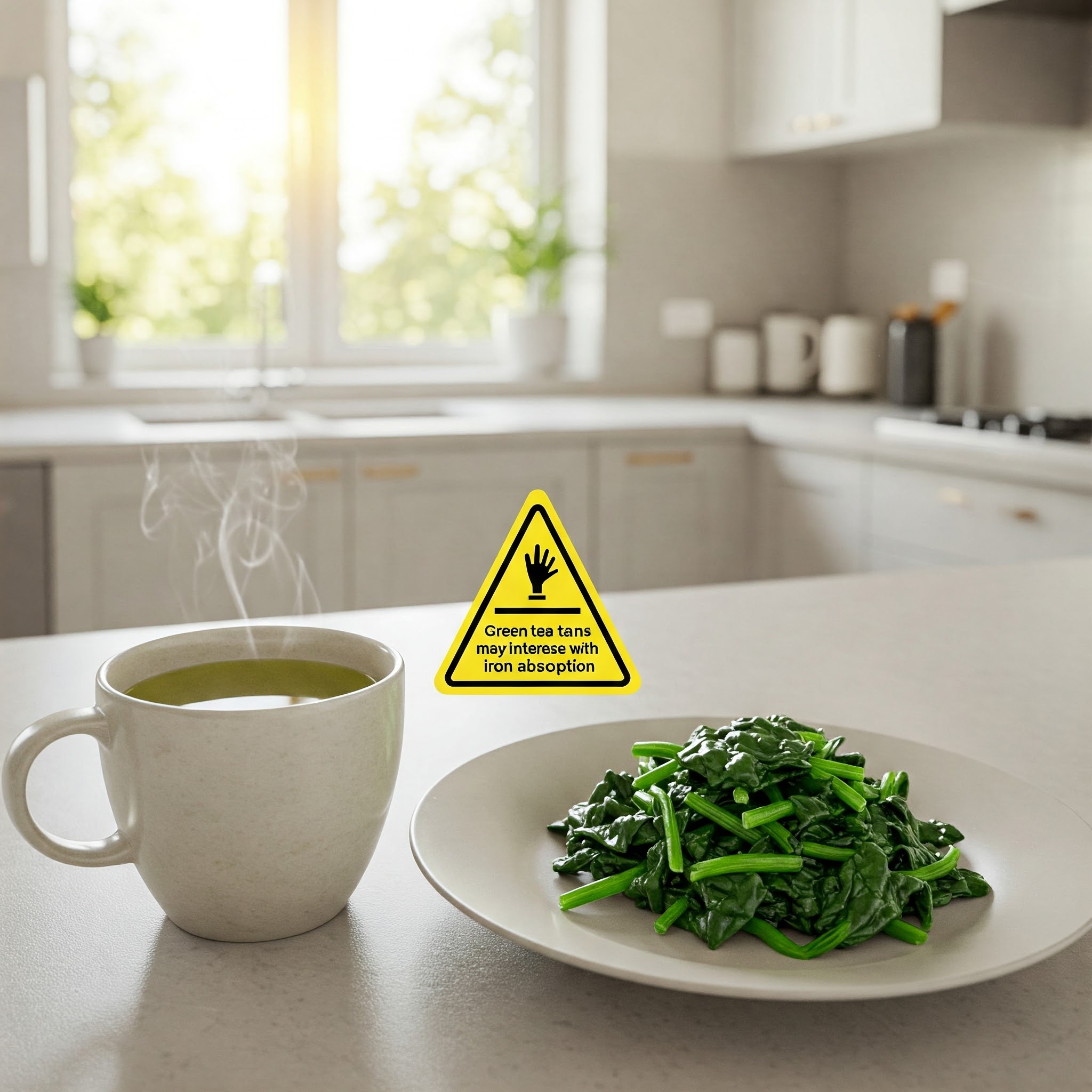 🚨 5. 녹차 + 철분 – 철분 흡수 방해