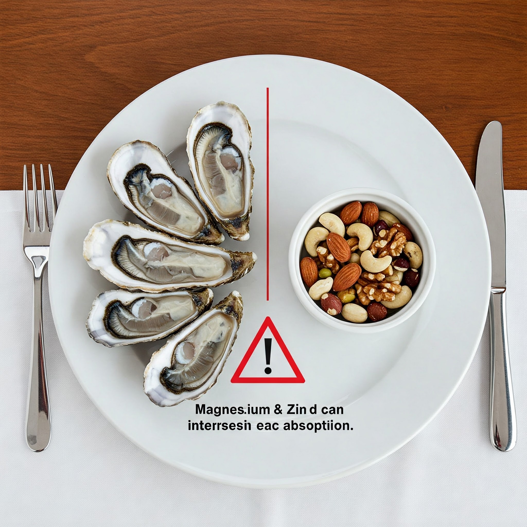 🚨 2. 마그네슘 + 칼슘 + 아연 – 미네랄 흡수율 저하