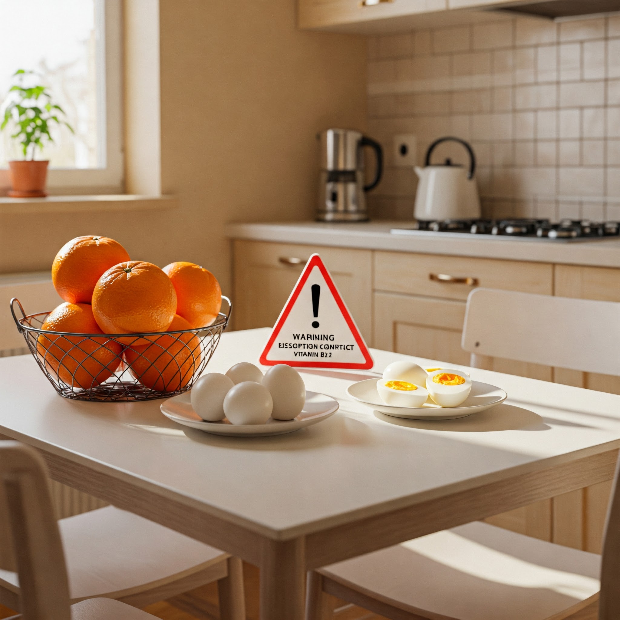 🚨 4. 비타민C + 비타민B12 – 비타민B12 흡수 방해